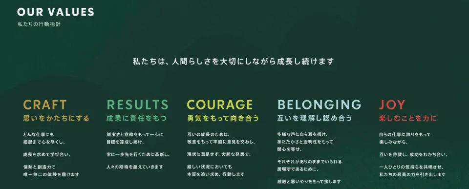 2. バリュー:私たちは、人間らしさを大切にしながら成長し続けますCRAFT 思いをかたちにするどんな仕事にも細部まで心を尽くし、